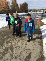 At 10:30 we all went to the gym for a special Terry Fox Assembly. The grade 5-6 students told us a bit about Terry's story and then lead some warm up exercises. Then it was time for the run. Our class did an amazing job and ran a total of 138 laps!